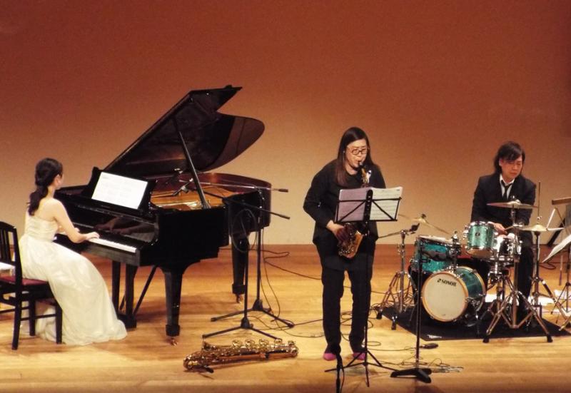 小布施由香(サックス)、山極遥香(ピアノ)、櫻井清隆(ドラム)