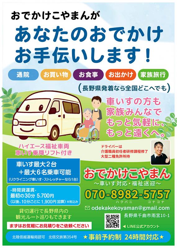 お役に立ちます。「おでかけこやまん」千曲市で開業!