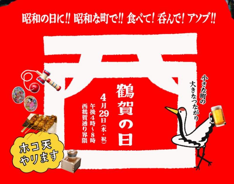 “昭和レトロ”が代名詞の長野市西鶴賀町で、「昭和の日」に昭和な町を楽しむ新たな取り組み「西鶴賀の日」がスタート! 西鶴賀通りを一部歩行者天国にし、飲食店からのテイクアウトを味わったり、けん玉やめんこなど昭和の遊びを楽しんだりできる。駄菓子屋など物販の出店も!※入場料・チケット購入不要