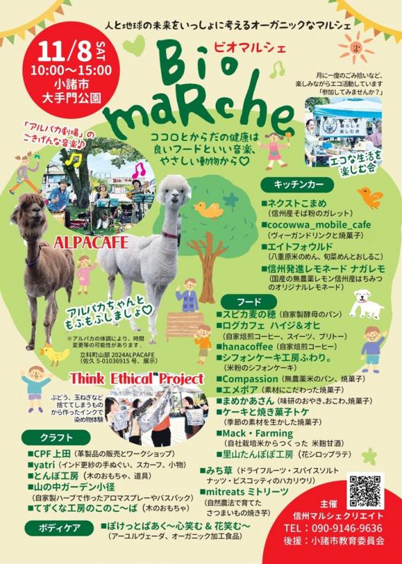 人と地球の未来をいっしょに考えるエシカル&サステイナブルなマルシェ。楽しく、おいしく、面白く。今回のテーマは「ココロとからだの健康は良いフードといい音楽、やさしい動物から」。当日はスペシャルゲスト、アルパカが登場。会いに行ってみよう。フードブースには、オーガニック&グルテンフリー、ノンアレルギー、無添加を標榜する店舗が大集合。会場内で開かれる「アルパカ劇場」ではフォルクローレの演奏が。とにかく、身体と心と環境に“よい”ことがいっぱい。詳しくは公式サイトでチェックを。