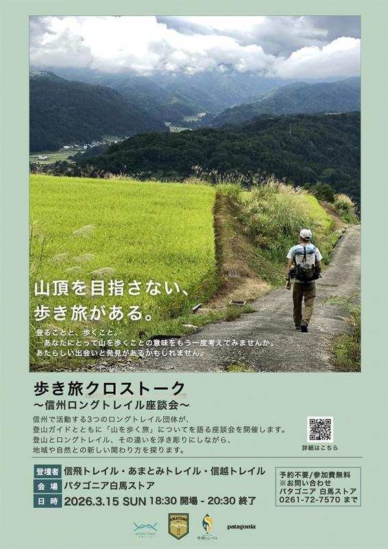 信州で活動する3つのロングトレイル団体が、登山ガイドとともに「山を歩く旅」についてを語る座談会を開催! 登山とロングトレイル、その違いを浮き彫りにしながら、地域や自然との新しい関わり方を探る。山を歩くことの意味をもう一度考えてみよう。あたらしい出会いと発見があるかも。