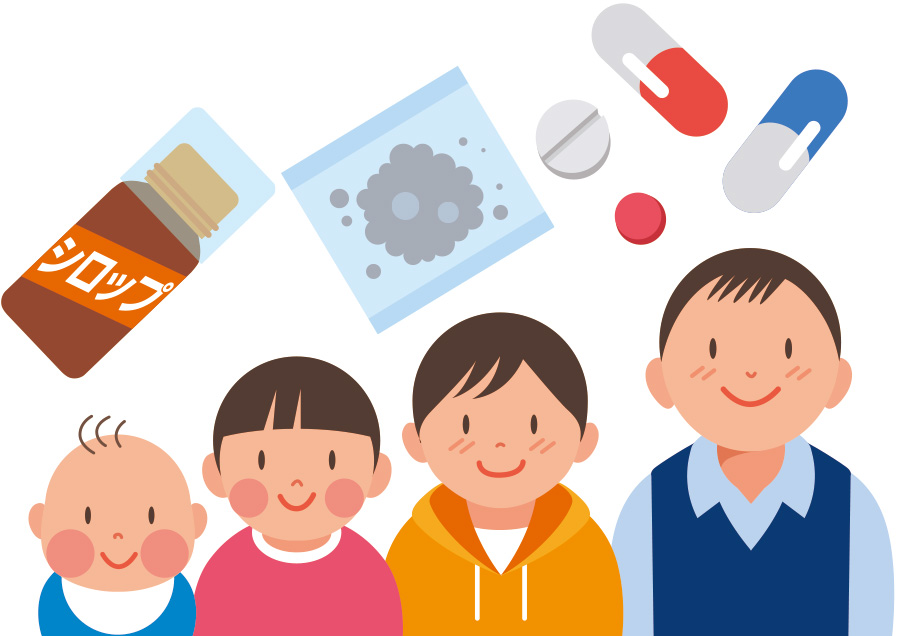 生まれたばかりの赤ちゃんが1歳になるまでは「乳児」、3歳までは「乳幼児」、6歳までは「幼児」、15歳までは「小児」と、子どもはその年齢によって細かく分かれ、薬もそれぞれの年代や体重によって違ってきます。大人用の薬の量を減らして与えるのはとても危険です。お子さんには、きちんと年齢、体重に合わせた薬を用意しましょう。