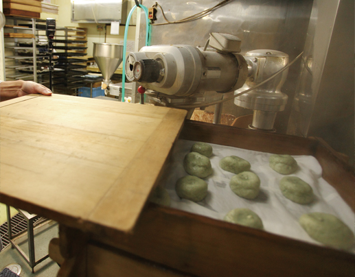 麩まんじゅうの決め手は、とにかく生麩。ゆるくても硬すぎても、あの生麩独特のもちもちとした食感は生まれせん。気温や湿度によって微妙に変わる変化を感じとり、職人の技で生麩を作り込みます。すべらかな生麩を存分に楽しむため、餡との比率は1 対1。