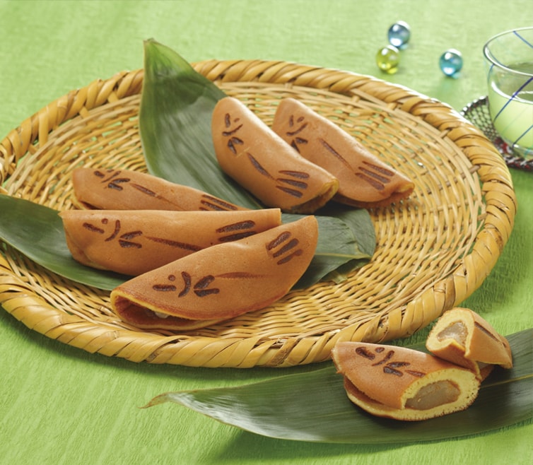 初夏、鮎の解禁の頃に合わせて作られる「鮎焼き」は、京都や岐阜、愛知のお菓子として有名です。カステラ風の生地で求肥を巻くのが定番で、関西では求肥と一緒に餡を包むことも多いそう。