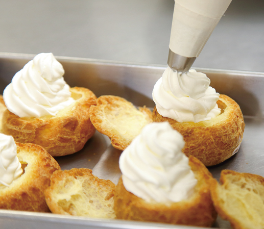 シュー生地に使われているのは、長野県産小麦と飯山みゆき卵、小布施のオブセ牛乳。そこにカルピスバターを加えることで、上品なコクが生まれます。200℃の高温で40分以上かけて焼き上げたシュー生地は、食べ応えがあり香ばしい食感がクリームとよく合います。