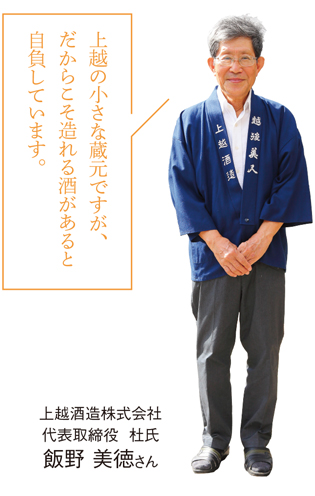 創業当時から絶えることなく湧き続ける井戸水と、全量新潟県産の酒造好適米、五百万石で醸した純米吟醸「越後美人」。かどのないまろやかな口当たりは、酒もろみを袋詰めして大きな槽に積み重ねて絞る「槽搾り(ふねしぼり)」という手法で絞った酒だからこその味わいです。ほとんどの蔵が止めてしまった古式を大切に守り続ける杜氏の技に、誇りを感じます。