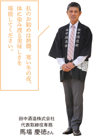 寛永20(1643)年創業。現在の蔵はえちごトキめき鉄道の谷浜駅前に位置し、駅を挟んだ前方には日本海が、後方には山並みが広がる全国でも珍しい蔵元です。銘柄である「能鷹」は、田中酒造の屋号である「能登屋」と「能ある鷹は爪を隠す」という諺から命名されたもの。その銘にふさわしく、蔵人たちは和を持ってただひたすらに、良い酒を求め、醸し続けています。