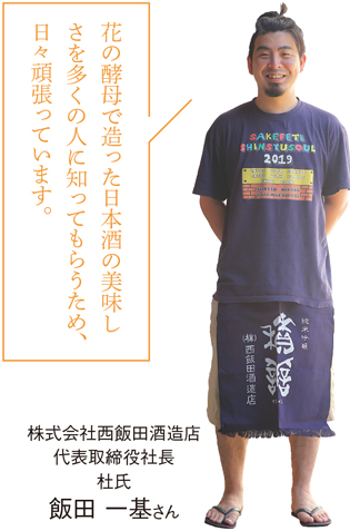 9代目の若き杜氏は、東京農業大学で花酵母を研究。その後3年間の修業を経て、西飯田酒造に花酵母で醸した新たな銘柄「積善」を誕生させました。中でも「純米生酒 積善 りんごの花酵母」は、犀川水系伏流水と酒造好適米ひとごこちをりんごの花酵母で醸した逸品。りんごならではの果実感が楽しめ、春先は青りんごのような爽やかさを、秋には完熟したりんごの甘さを感じる、何度飲んでも新しい美味しさに出会える生酒です。