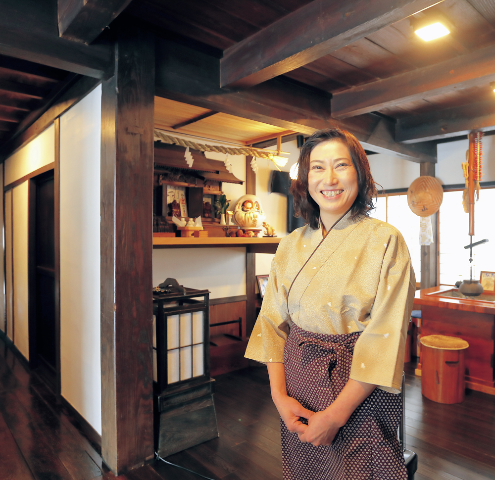 さまざまな手続きを経て始まった白金家の工事ですが、これがとにかく大変でした。保存地区の建物を復元するということは、釘ひとつ打つにしても長野市を通して文化庁にお伺いをたてないといけないんです。結局、復元工事に2年の月日を費やすことになりましたが、隠れていた栗やケヤキの柱や梁が現れるたびに、曾祖父がどんな思いでこの建物を建てたのか、その心に触れているようで嬉しかったですね。愛着がどんどん湧いてきて、この宿を私の代で途切れさせてはいけないという思いが、自分の中で育っていくのを感じました。そうして復元が終わった白金家を見上げたとき、「この歴史ある建物を多くの人に見ていただきたい、曾祖父の思いを受け継ぎたい」と素直に思えたことが最後の決め手となり、4代目女将として宿屋を始めることにしました。(2021年4月号掲載)