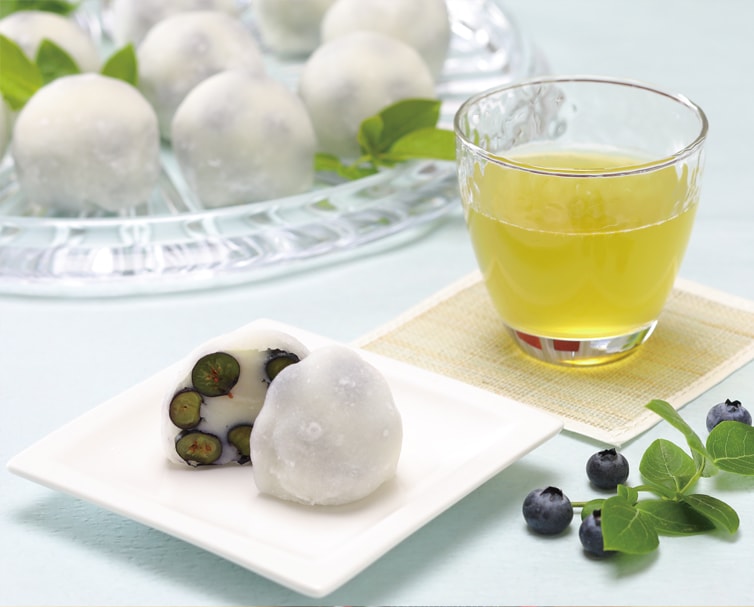 ブルーベリーと合わせるのは、たむら特製のミルク餡。砂糖を抑えた白手亡の餡に水飴とたっぷりの練乳を加え、時間をかけてじっくりと炊き上げます。餡とブルーベリーとのバランスはほぼ1対1。たっぷりと入ったブルーベリーのフレッシュな甘味と酸味がミルク餡によってさらに引き出され、ブルーベリー本来の味を存分に楽しめる逸品となりました。