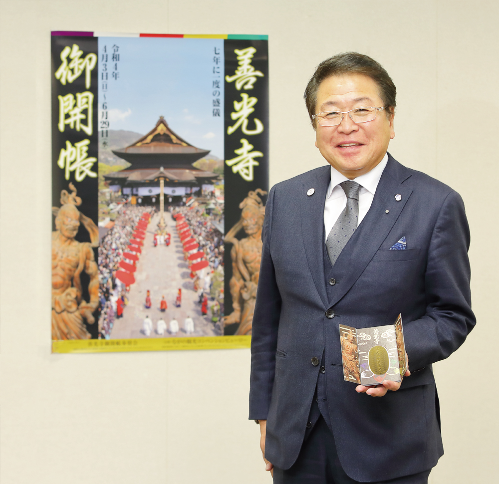 長野商店会連合会との関わりは、東之門町の道路拡幅計画がきっかけです。昔ながらの商店街を残したいと、地元商店をまとめて「東参道商店会」を結成。長野商店会連合会に加盟した上で市に反対を表明し、計画を撤廃することができました。近年善光寺周辺は古い建物を活かしたリノベーションにより、昔ながらの路地を散策しながら町を楽しむ新たな文化が創造されています。朝夕に互いに声をかけ合える距離感や、のんびりと散策する人の姿を見ると、この街並みを残すことができて本当によかったと思います。(2022年2月号掲載)
