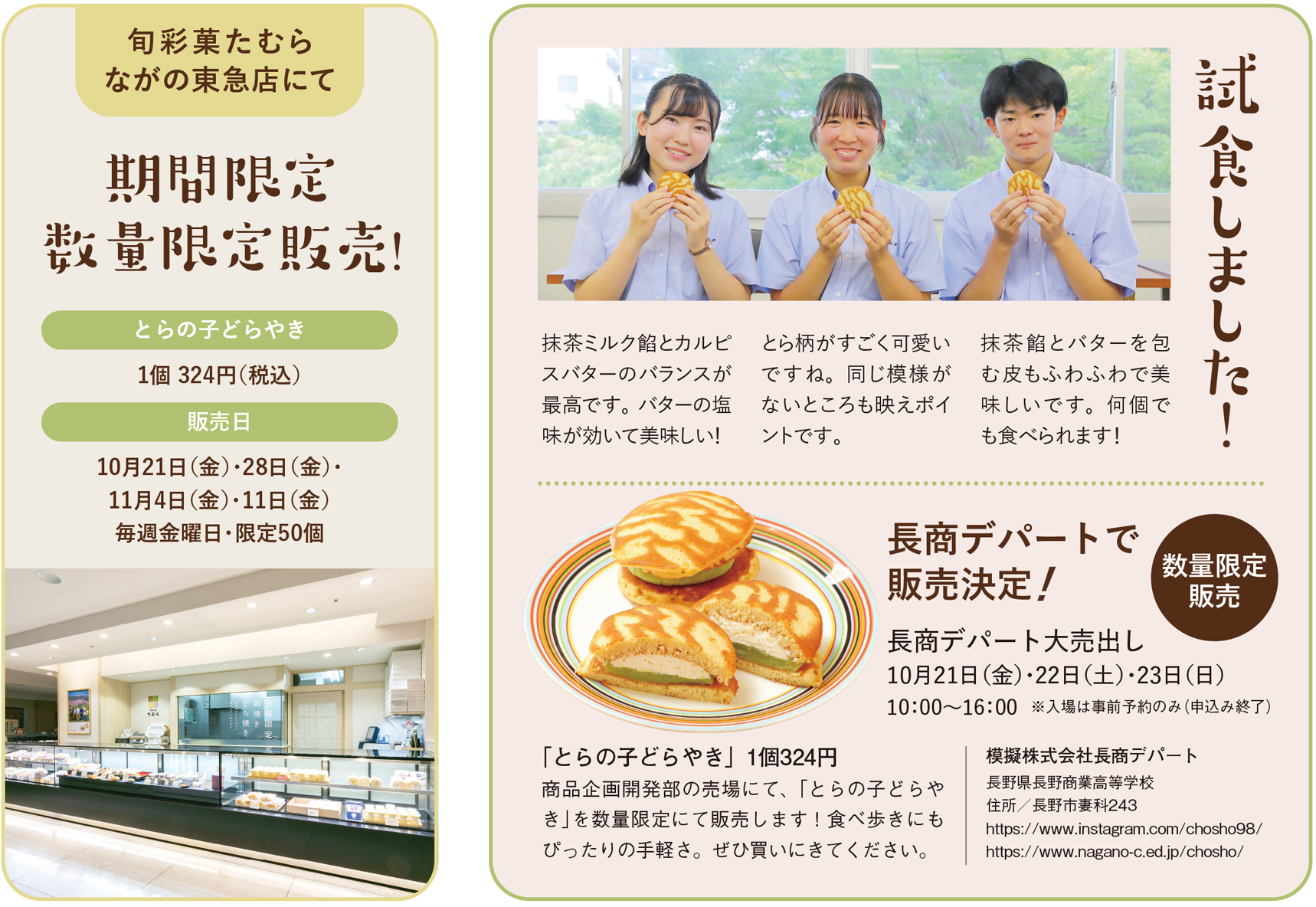 大人である今の私の思いを込めた「とらの子どらやき」。3人が大人になった時、今度は彼らが、地域の「とらの子」を愛しく思えますように。みんなにとって大切な故郷である長野が、そんな風に思いやりあふれるまちになったら素敵だと思いませんか。