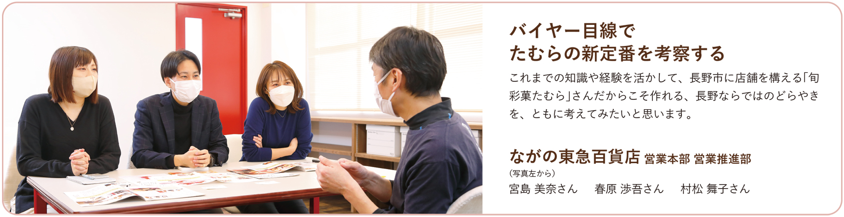春原 それは私たちも同じです。ながの東急も、地域に根差した百貨店として、長野の良さを全国に発信していきたいと思っています。今回は、たむらさんと一緒に、新たな「長野ならではのどらやき」を作れたらと考えています。