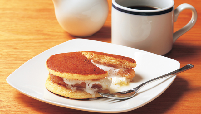 さらに、この組み合わせは、どらやきの新しい楽しみ方も提案できることに気づきました。「たわわバター」を電子レンジで、バターがとろりと溶けるくらいまで温めると、ホットケーキとアップルパイを合わせたような美味しさになるんです。コーヒーとの相性も抜群で、カルピスバターのほどよい塩味と、シナモンの効いたりんご果肉たっぷりの餡、温められてふんわり食感が強調された皮のすべてのバランスが最高です。予想以上の美味しさで、和にも洋にも変化し、2通りの味わい方が楽しめるどらやき、「たわわバター」が完成しました。