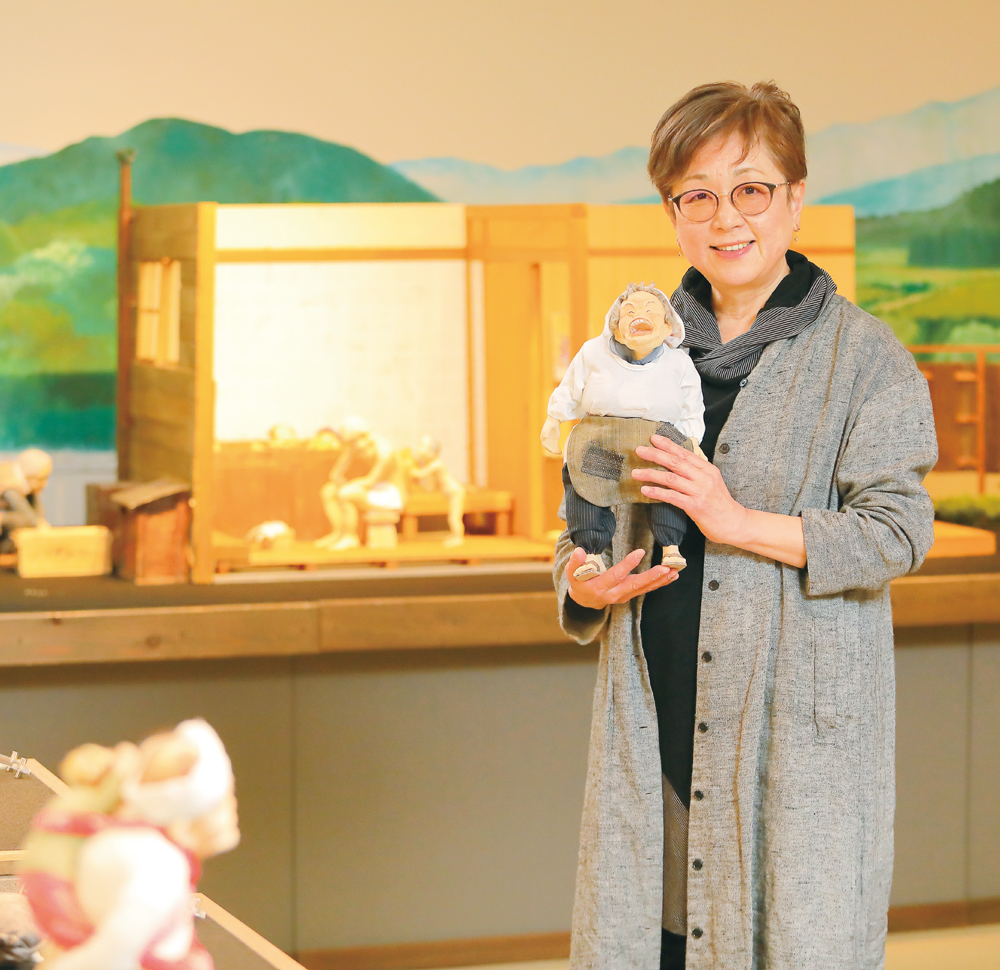 ふと見まわしてみれば、周りには飯山の豊かな自然や田畑、子どものお守りをしながら農作業に精を出すお年寄りたちがいました。この日本の原風景ともいえる世界を人形に込めて残したい。いずれは見ることができなくなるものを伝えていく使命がある。今は、そんな思いで人形を作っています。