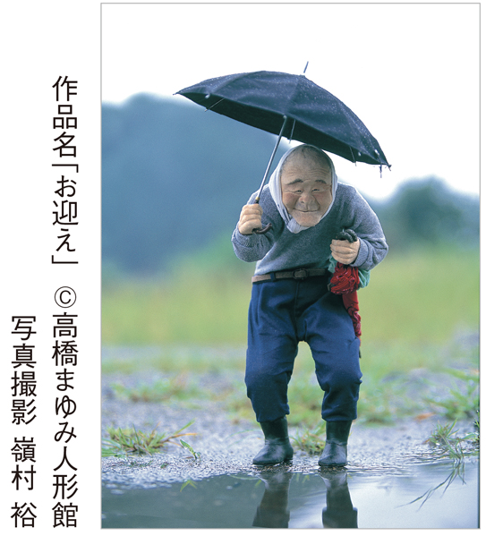 例えば「お迎え」というタイトルの人形があるんですが、これは私の体験から作っています。ある雨の日に義父が「子どもたちが傘を持っていかなかった」といってソワソワしていて。私は、「自分で忘れていったんだから、濡れて帰ってくれば今度から持っていくようになるでしょ」って放っておいたんですね。そうしたらいつの間にか義父の姿が見えなくなっていて、どこに行ったんだろうと探したら、子どもたちの傘を抱えて学校までお迎えに行っていたんです。その後ろ姿を見た時に、子どもたちを愛おしく思ってくれている心や情の深さを感じて、涙が出そうになりました。日常の暮らしの中にある愛のある情景は、何気なく過ごしていると見過ごしてしまいがちですが、実は身近にたくさん溢れています。そこにある情、「想い」も合わせて、心を込めて人形を作っています。私の人形を見た人が、そのメッセージを受け取ってくれれば幸せですね。
