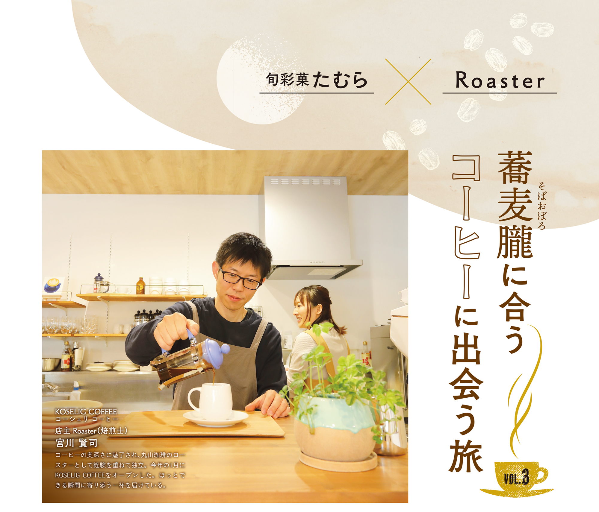 当初の予想では、深煎りの方が合うのではないかと思っていたのですが、相乗効果でお互いの良さを一番引き立て合っていると感じたのが、中煎りのブレンド「春日和」でした。ふんわりと淡い印象だった「春日和」が、蕎麦朧と合わせることで輪郭がくっきりと浮かび上がってきたんです。これまでもいろいろなお菓子とコーヒーを合わせてきましたが、ここまで劇的に変わる経験は初めてでした。最初はコーヒーの味わいが強く出て、あとから蕎麦朧の蕎麦の香りが鼻の奥のほうへ、ふっと抜けていきます。お互いが高め合うような印象は、蕎麦朧に使用されている素材の良さが影響しているように思います。お菓子もコーヒーも、やはり素材が命なのだと再認識することができました。非常に美味しく、楽しいマリアージュでした。