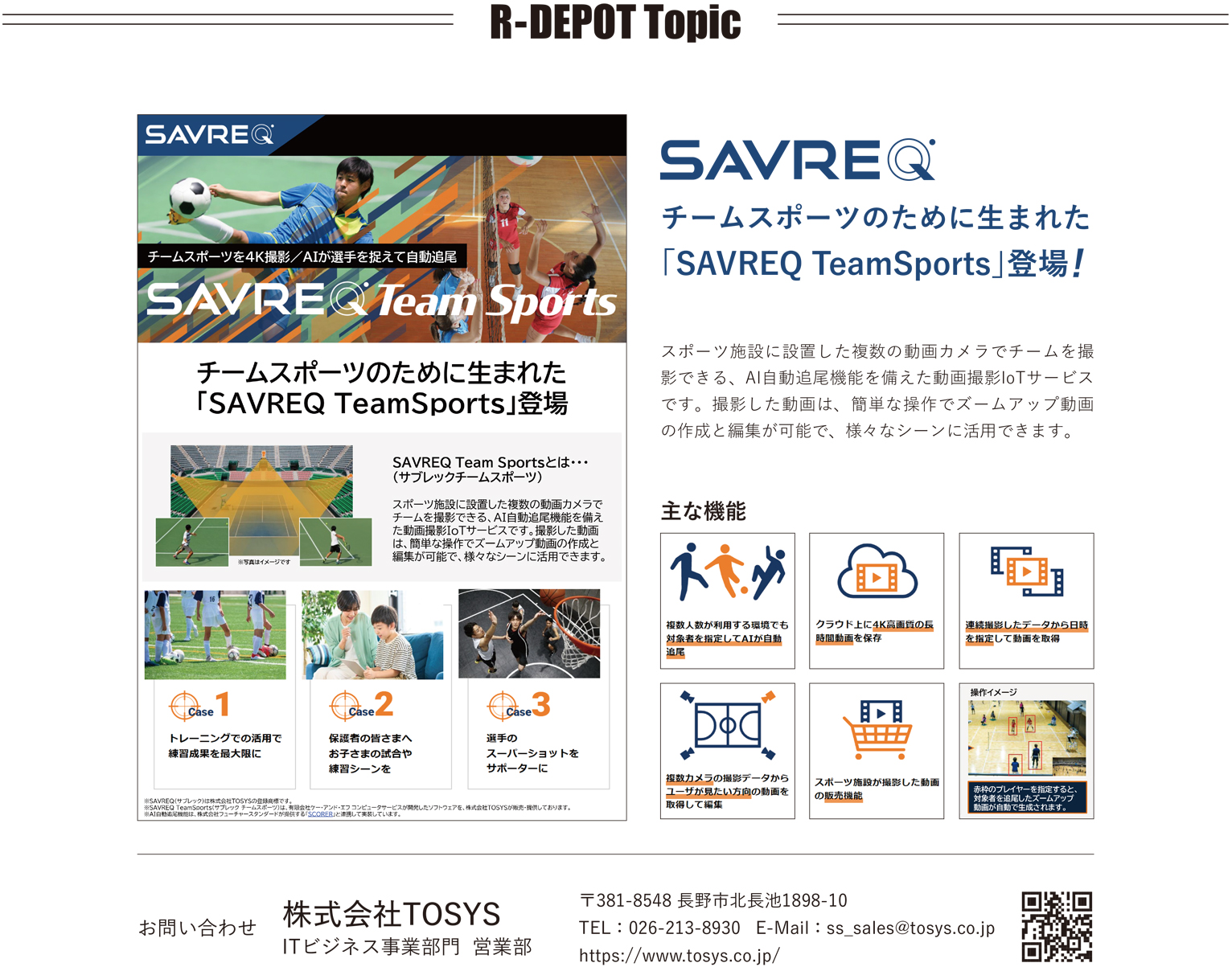 そのひとつが、「SAVREQ」です。これは、AI自動撮影サービスとオンラインレッスンを融合させた、新しい「スポーツDX」サービスです。スキーヤーが自分でQRを読み込みスタートすることで、自分の滑りを自動録画。その動画をインストラクターに送ると、アドバイスを書き込んだカルテを送り返してもらえます。いつでも誰でも気軽にレッスンを受けることができ、自分の滑りをデータとして蓄積することができるため、留意点や上達の過程を振り返ることもできます。現在、野沢温泉スキー場や菅平高原スノーリゾート、八千穂高原スキー場に導入されていますので、興味のある方は挑戦してみてください。またこの春、「SAVREQ」をさらに発展させた、「SAVREQ TeamSports」を開発。チームスポーツのDXサービスも提供する予定です。