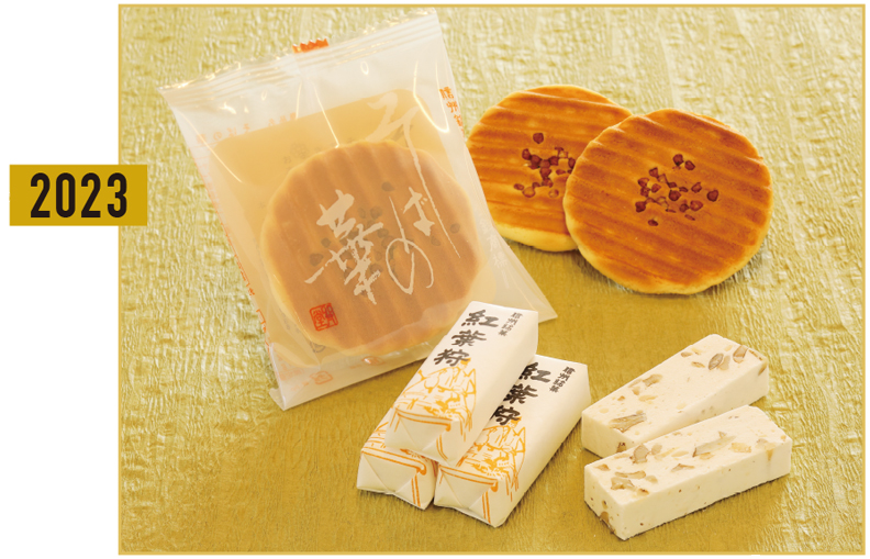 戦後の激動の時代を経て、先代である3代目が考案したのが「紅葉狩」です。蜂蜜とくるみを用いた風味豊かな和菓子は、信州戸隠の鬼女紅葉伝説に因んで命名。当時は高度経済成長により、善光寺参りの団体観光客も増加しており、信州のお土産にふさわしい菓子として「紅葉狩」は人気となりました。