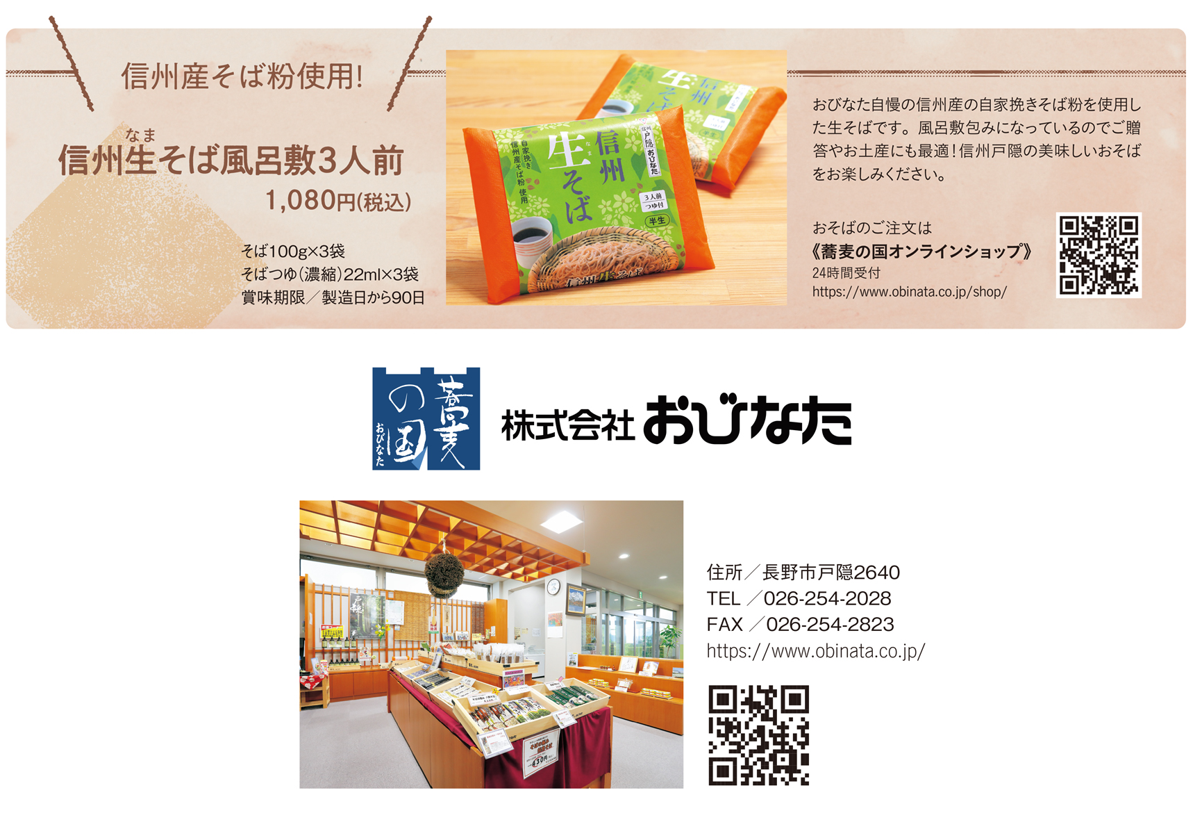 長野市戸隠に本社を構える、株式会社おびなた。大正6年の創業以来、戸隠の地に根を下ろし、今日まで歴史を紡いできました。現在は、そばの製粉から製麺まで、独自の一貫生産により、安心・安全で美味しい戸隠そばを日本全国へ届けています。「蕎麦朧」に使用しているそば粉は、戸隠産100%。地産地消を目指す旬彩菓たむらにとって、なくてはならないパートナーです。今回は、社長である大日方大治さんにお話を伺いました。