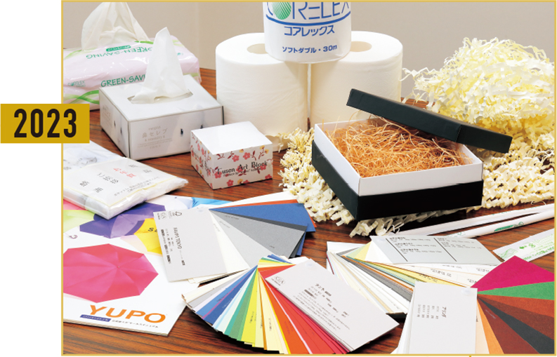 ベーシックな和洋紙はもちろん、ニーズに応じたさまざまな特殊紙や、紙のストロー、ティッシュペーパー等の家庭紙など、多種多様な商品を取り扱っています。また、自社で製造する紙の緩衝材は、環境に配慮した商品として注目されています。
