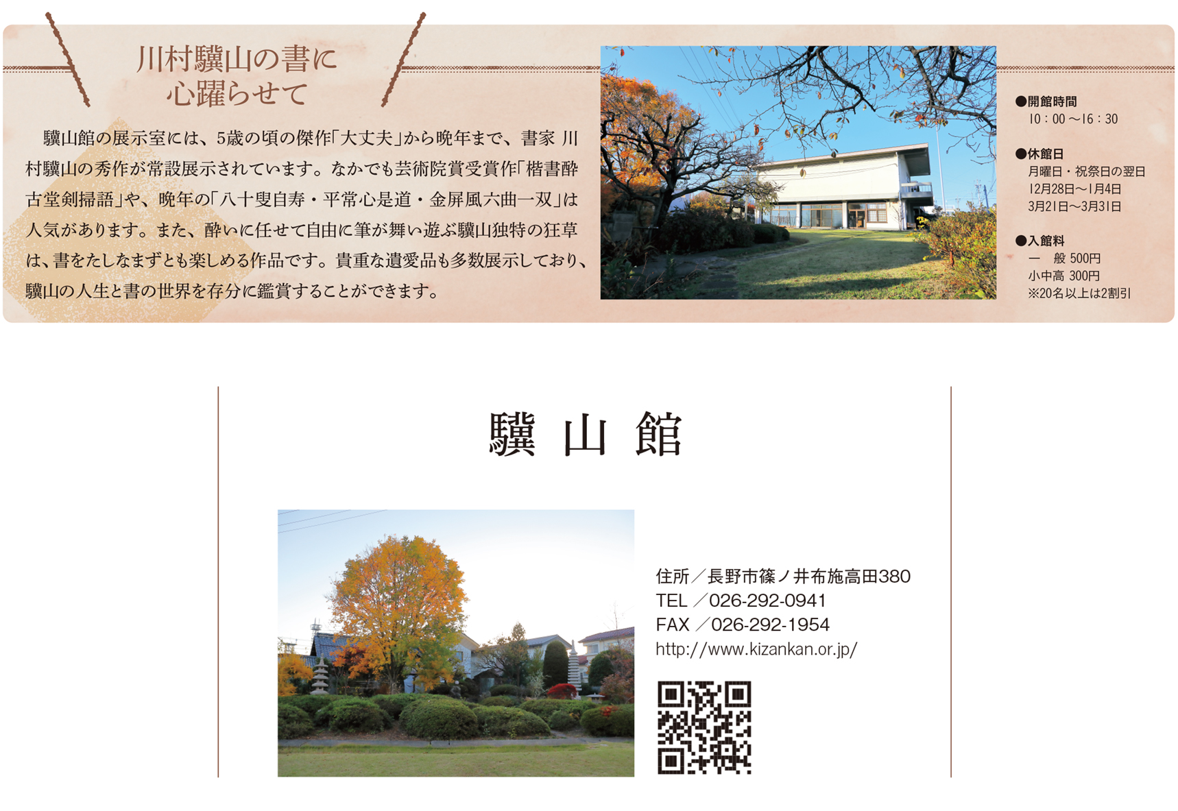昭和37(1962)年に開館した「驥山館」は、地域の方たちとのご縁や寄付で建てられた、おそらく日本で初めての「書家」専門の美術館です。静岡県で生まれた川村驥山が、第2次世界大戦の際に疎開してきたのが篠ノ井。私が知っているのは晩年の頃ですが、背の小さなおじいさんでね。自分の体よりも長い杖をついて、よく近所を散歩していました。お酒が大好きで、みんなから親しまれ、愛される存在だったと思います。