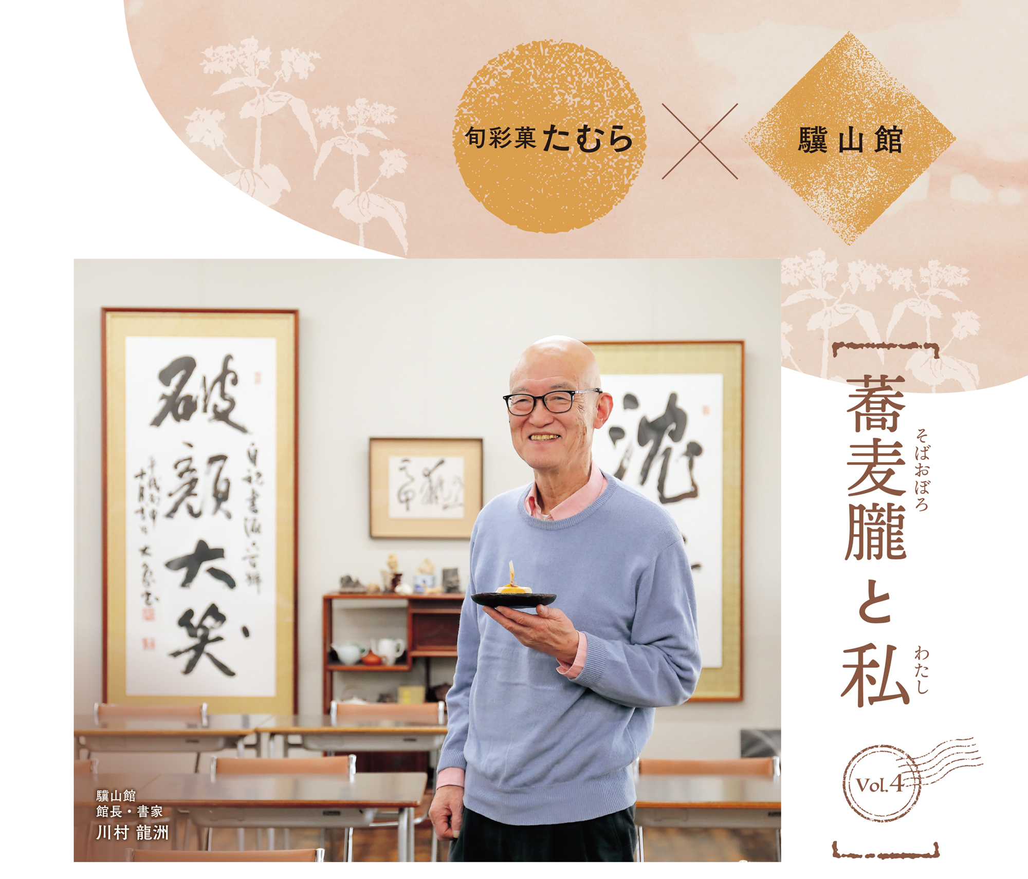 書家、川村驥山が晩年を過ごした篠ノ井の住宅街に建つ「驥山館」は、今も昔も「書」を楽しむ人たちにとって愛すべき大切な場として、地域の方々に親しまれています。そんな「驥山館」の館長を務められているのが、驥山先生の孫であり、書家である川村龍洲先生。たむらとは、「蕎麦朧」が縁で親しくさせていただいています。今回は、「書」に邁進されてきた川村龍洲先生に、「書」と「菓子」の共通点を語っていただきました。