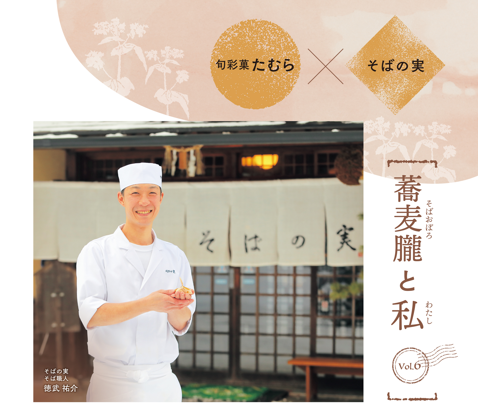 旬彩菓たむらを代表する菓子である蕎麦朧は、長野県産の上質な小麦粉、戸隠産の最上級蕎麦粉、和三盆、カルピスバター等を用い、一つひとつ手作業で丁寧に仕上げた、たむらオリジナルの和菓子です。