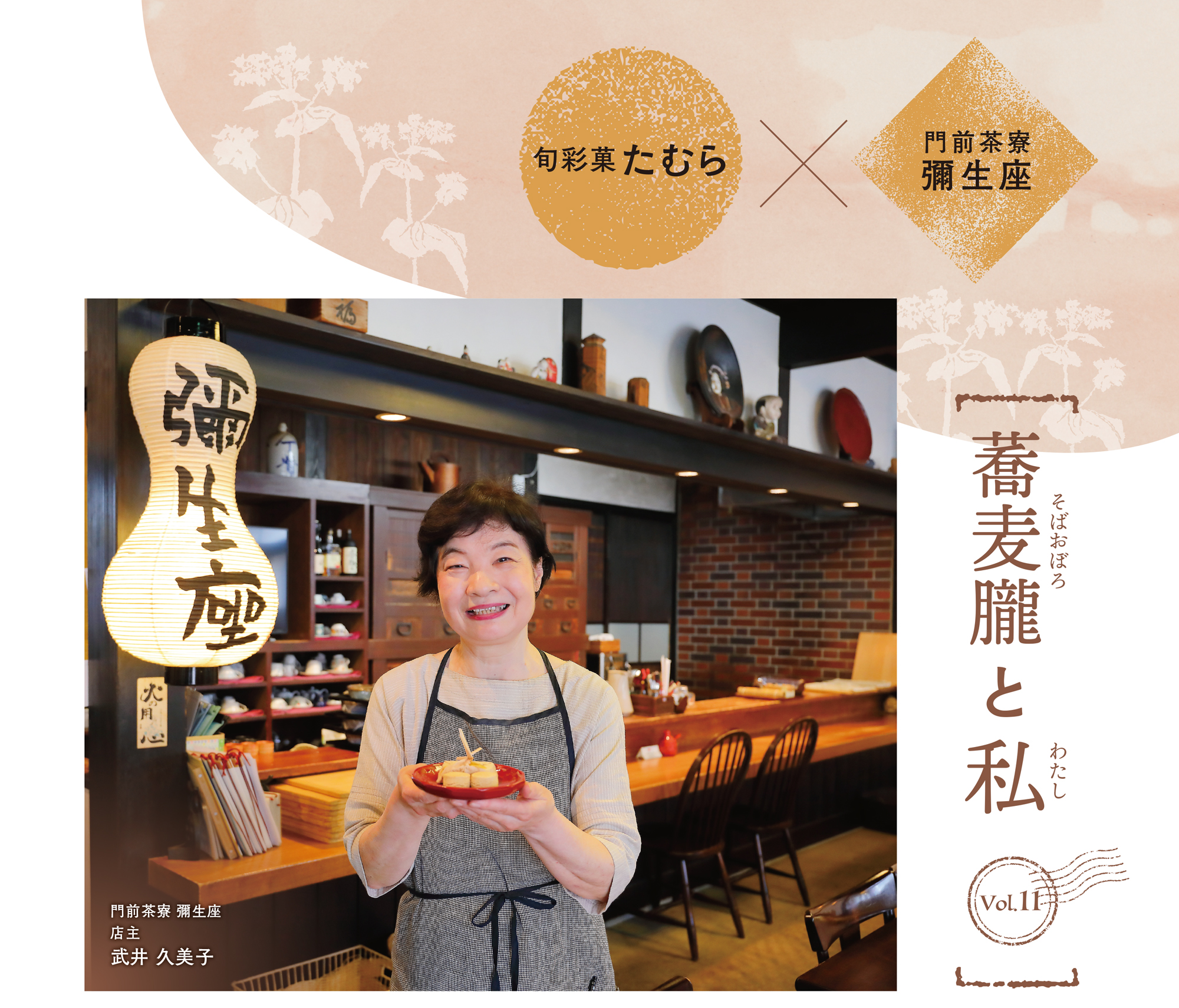 旬彩菓たむらを代表する菓子である蕎麦朧は、長野県産の上質な小麦粉、戸隠産の最上級蕎麦粉、和三盆、カルピスバター等を用い、一つひとつ手作業で丁寧に仕上げた、たむらオリジナルの和菓子です。