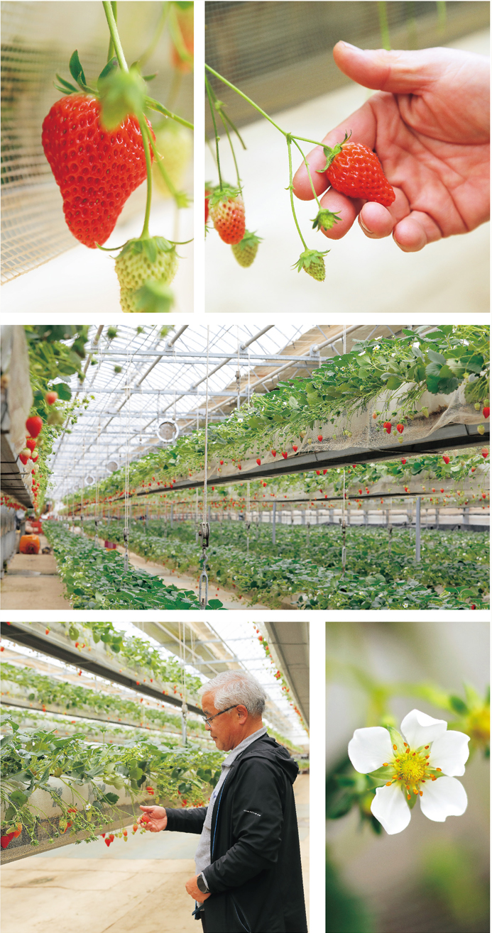 創業当初は、いちごを5反歩、トマトを1反歩から始め、徐々に規模を拡大。現在では、いちごを7反歩、トマトを8反歩ほど栽培しています。いちごは、「章姫」「紅ほっぺ」「のぞみ(スターナイト)」と、夏いちごの「すずあかね」の4品種を育てています。冬いちごは9月に植えて12月から6月まで収穫でき、夏いちごは7月から11月まで収穫できるので、1年を通していちごを楽しんでいただけます。いちご狩りもやっていますので、ぜひ美味しいいちごを食べにきてほしいですね。