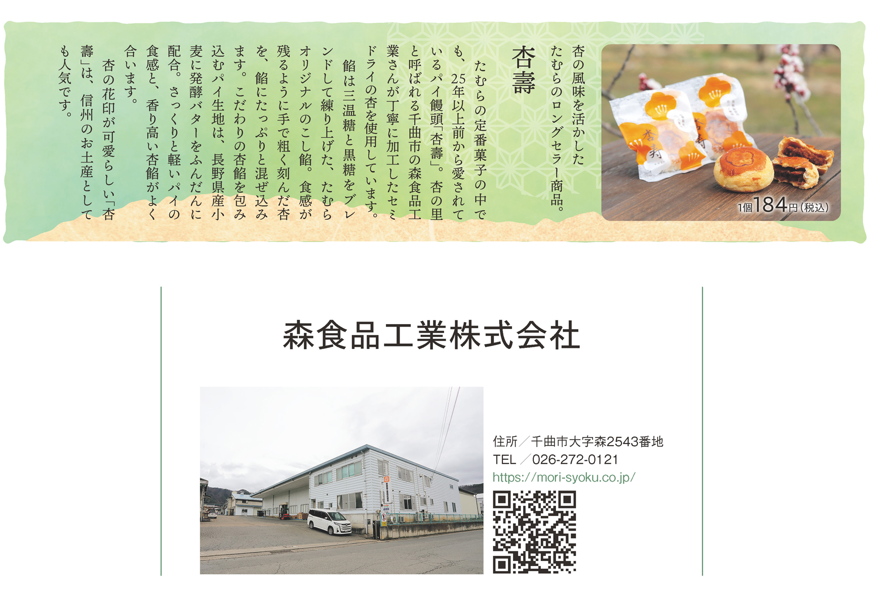 今回はあんずの里で有名な千曲市で、昔から杏の加工を手掛けてきた森食品工業の栁澤部長、北澤主任にお話を伺いました。