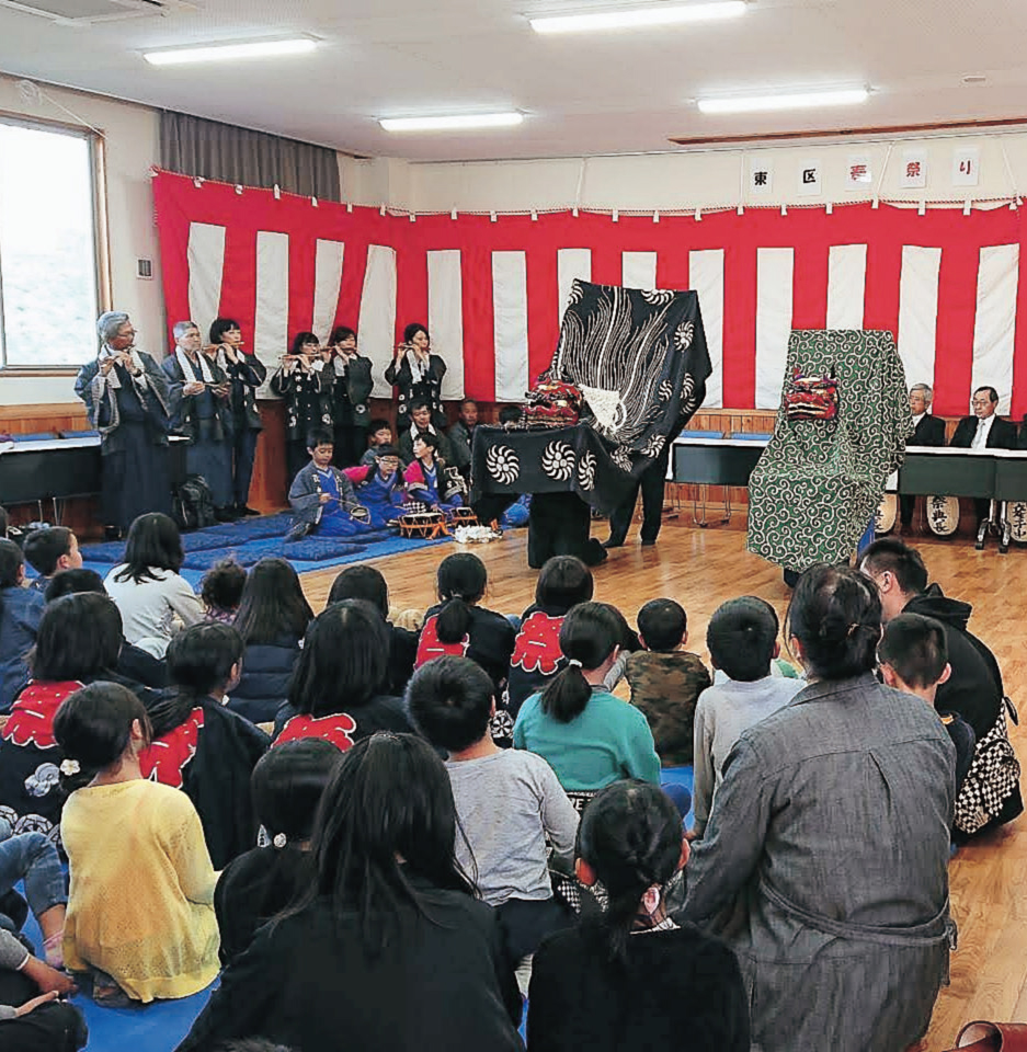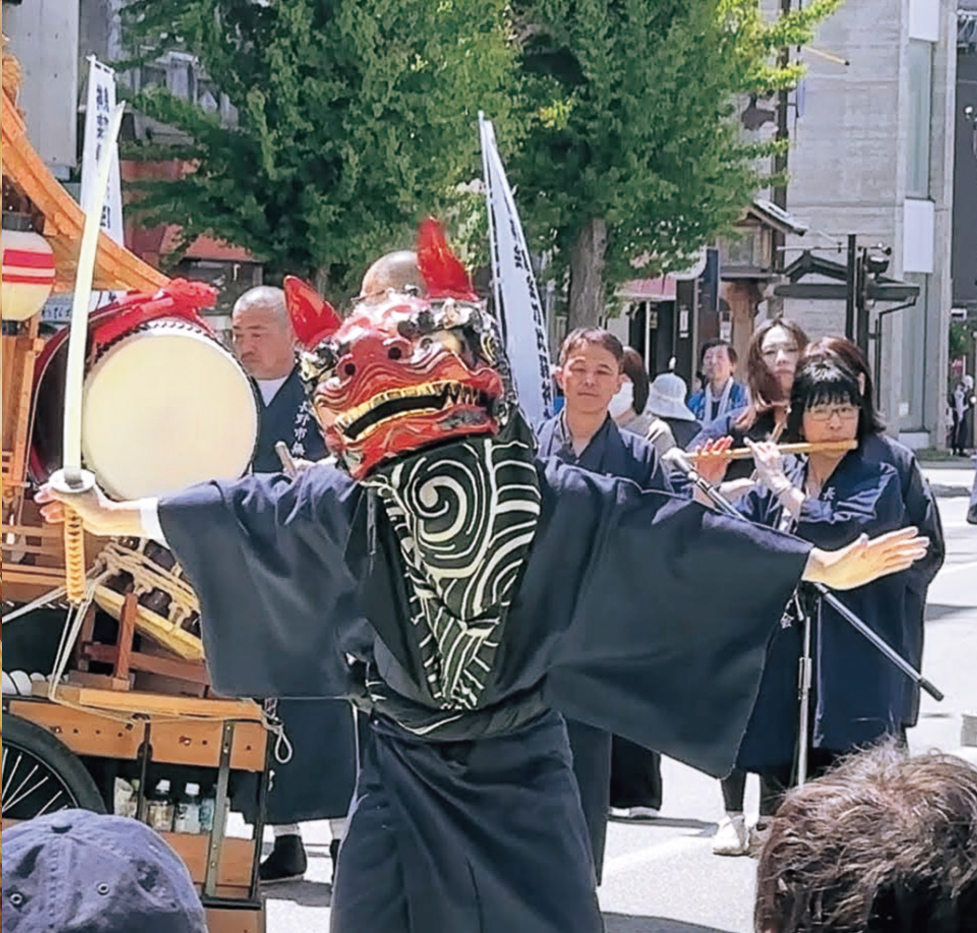 獅子舞は地区によってさまざまな違いがあり、神楽の曲もそれぞれ違います。大豆島神楽は女獅子で、「道中囃子」から始まり「幌舞い」「御幣舞い」「狂い舞い」と全部で4曲あります。市の選択無形民俗文化財にも指定されている風間神社太々神楽は男獅子で、太刀を持つ舞があるのが特徴です。「道中囃子」で2曲、「勇み」で2曲、「三番叟」「母衣」「太刀」と、全部で7曲あります。覚えるのは大変ですが、やっぱり生の音で舞う獅子は躍動感が違います。まちの人たちからも「生の獅子舞はいいね」とか、「頑張ってね」と声を掛けていただけるので、やりがいもあります。伝統を守ることの大変さ、継続させることの難しさなど課題もたくさんありますが、無理せず、まずは自分自身が楽しみながら、神楽の素晴らしさを伝えていければと思っています。どの地域でも、神社に幟が立ちお囃子が聞こえてきたら、お祭りがある合図なのでぜひ立ち寄ってみてください。