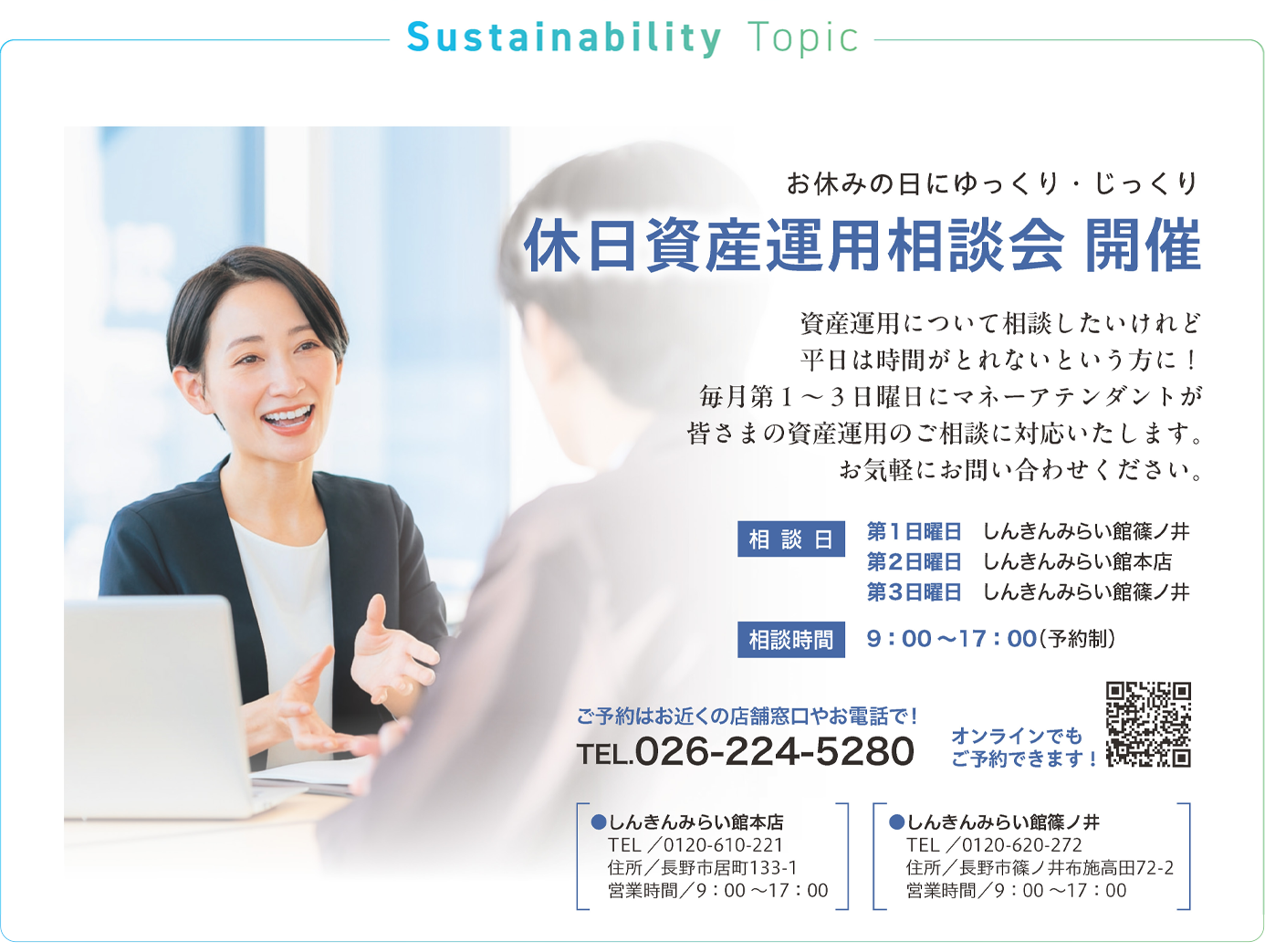 長野信用金庫は、大正12(1923)年より業務を開始し、令和5(2023)年に創立100周年を迎えました。北信地区の皆さまとともに100年歩んでこられたことに感謝すると同時に、次の100年のために自分たちができること、やるべきことは何かを改めて自らに問い、行動し始めています。