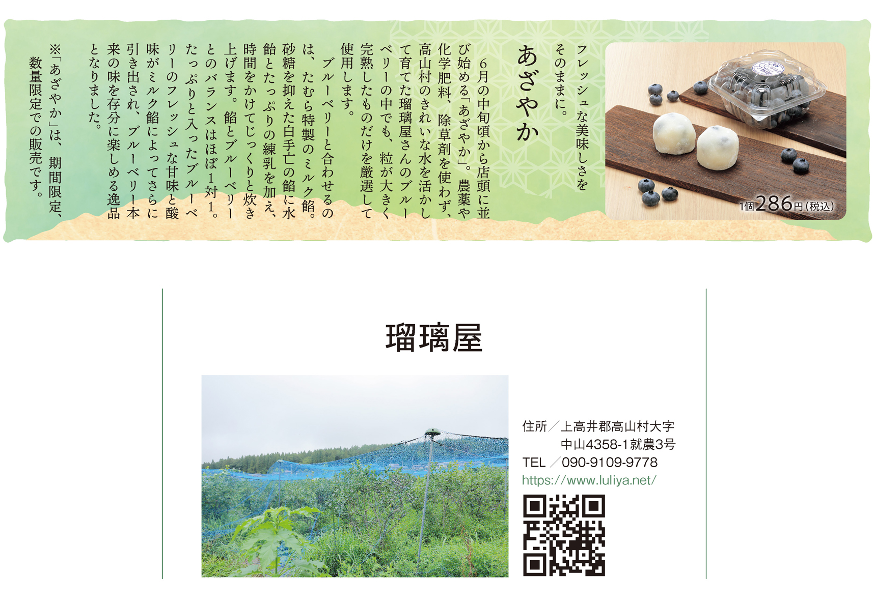 中でも、生のブルーベリーをそのまま使った大福「あざやか」にはびっくりしました。このために作った特製のミルク餡とブルーベリーの相性は最高です。ブルーベリーを和菓子にする発想と、素材本来の味を美味しく食べていただきたいという職人の思いが込められているような気がして、本当に美味しいんですよ。ブルーベリーの旬の時期にしか作れない和菓子ですから、ぜひ多くの方に味わっていただきたいですね。これからも、たむらさんから「これはうまい」と言っていただけるよう、安心・安全で美味しいブルーベリーをお届けしていきたいと思います。