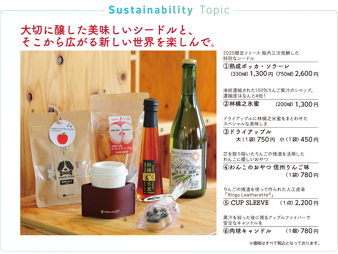 この他にも、キャンドル作家さんに残渣を活用した犬が齧っても大丈夫な「肉球キャンドル」を作ってもらったりと、林檎学校醸造所を起点に世界がどんどん広がっています。これからも、面白いな、それって素敵だなと思うことにスピーディーに挑戦し、自分たち自身が楽しみながら、飯綱町のりんごを余すところなく活用していきたいと思います。