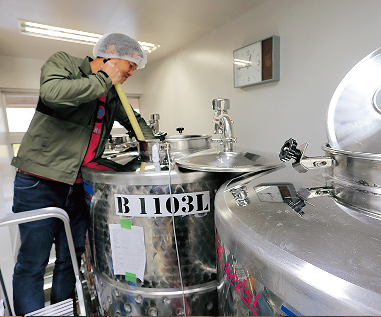 そんな中で目をつけたのがシードルです。以前から委託でシードルを造って販売はしていたのですが、食の多様化やシードルの認知度の高まり、需要の拡大などを受け、自分たちでシードルを造ろうと決めました。同じ志を持った3農家で、平成29(2017)年12月に北信五岳シードルリー株式会社を設立。平成31(2019)年5月に初めてのシードルが完成しました。「ふじ」と「グラニースミス」の2品種のりんごをブレンドして酵母違いで造ったシードルは、どちらも非常に美味しく仕上がり、ほっとしたのと同時に自信につながりました。