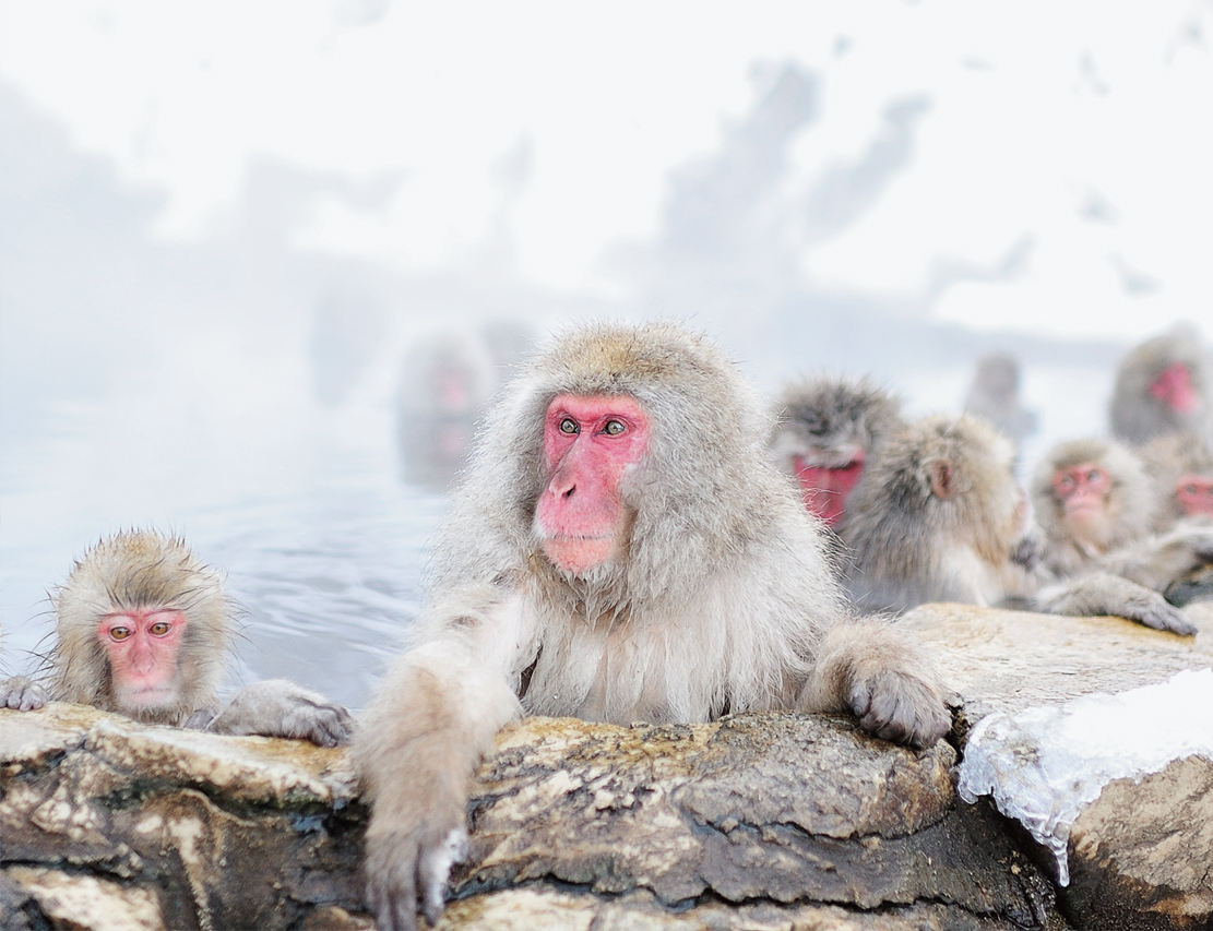 野生のニホンザルの生態観察と保護を目的として開苑した地獄谷野猿公苑は、今も多くの研究者が訪れ、サルの生態観察が行われています。苑内で餌付け用に用意しているのは、大麦や大豆、りんごなど。餌づけではありますが、餌やりショーではありません。餌を与える時間も状況によって変え、告知もしていません。苑を訪れるサルたちはあくまでも野生のニホンザルであり、群れは移動しながら春は木の芽、秋は木の実など旬の味を求め、体が必要とする栄養を本能的に欲して動いています。季節や日によって、苑に来てもサルがいないのは野生である証。そんな野生の二ホンザルを間近で観察できることこそ、野猿公苑の醍醐味なのです。(2026年2月号掲載)