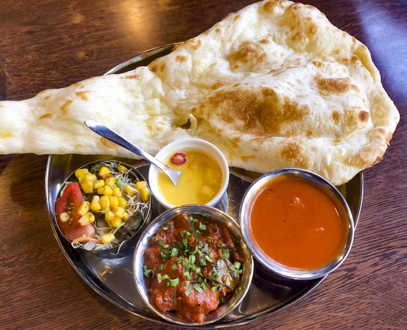 ランチメニューの一例。気軽に本格インド料理を楽しんで