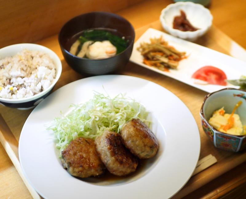 食堂そらの日替り定食「つくねの照焼き(1200円)」。献立はinstagramで確認を