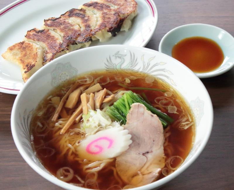 定番!「醤油ラーメン(800円)」と、ニンニクたっぷりの「餃子(500円)」