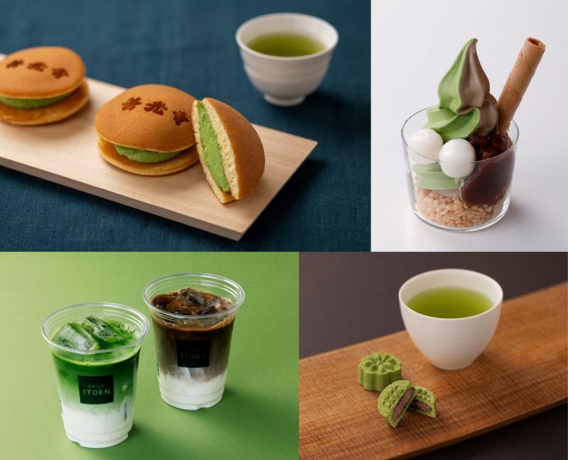 写真左上・右下は、善光寺店限定メニュー「抹茶生どら焼(単品440円)」と「抹茶生落雁(単品495円)」