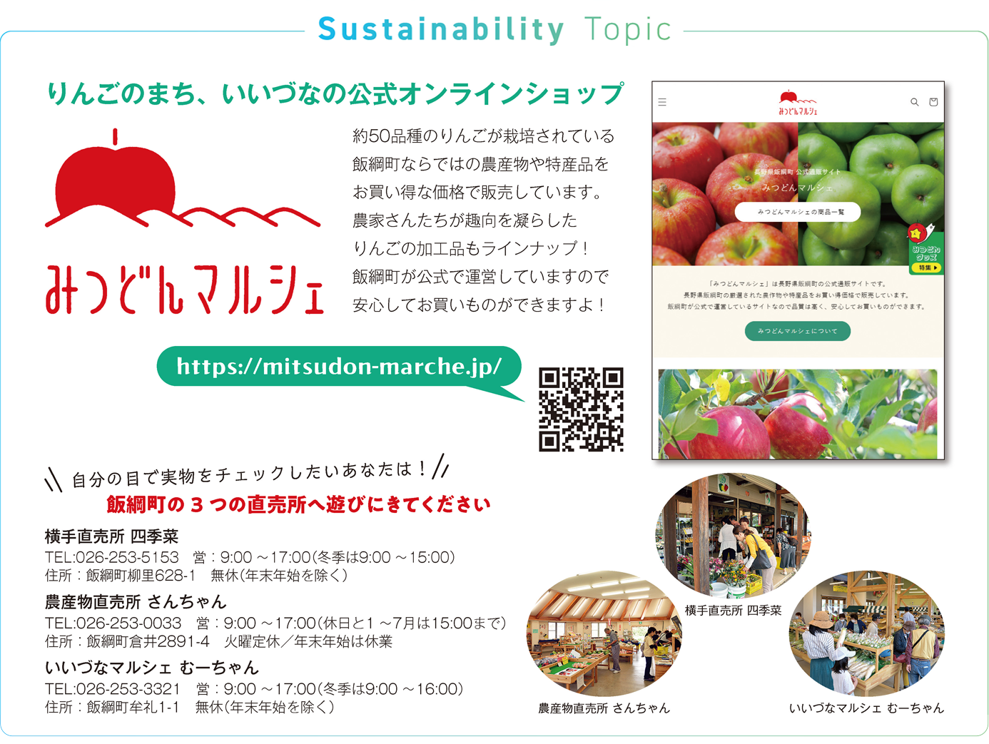 飯縄山の麓にひろがる、のどかな町、飯綱町。昼夜の寒暖差の大きな気候は果樹栽培に適しており、中でも美味しいりんごの産地として知られています。飯綱町では町の基幹産業ともいえるりんご農家を支援することで、持続可能な農業の在り方や町の活性化を模索し、さまざまな施策に積極的に取り組んでいます。