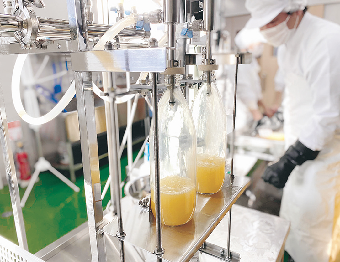 飯綱町では、令和3(2021)年2月に「飯綱町三本松農産物加工施設」を新設し、各農家が自社農園のりんごを持ち込んで、オリジナルのりんごジュースやジャム、ドライフルーツなどを商品化できるよう支援しています。品質に問題がない規格外品に付加価値をつけることで廃棄されるりんごが減り、各農家の新たな販路拡大や収入増にもつながっています。