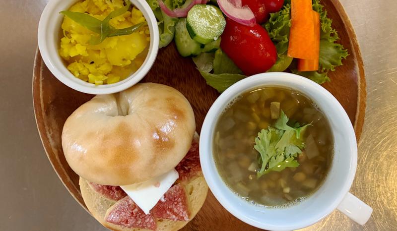 自家製ベーグルやパンのランチプレートも好評