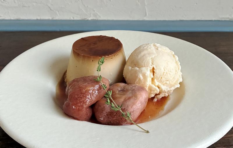 カスタードプリンと、その時々で変わる自家製アイスクリーム&フルーツの盛り合わせ(650円~)