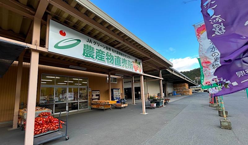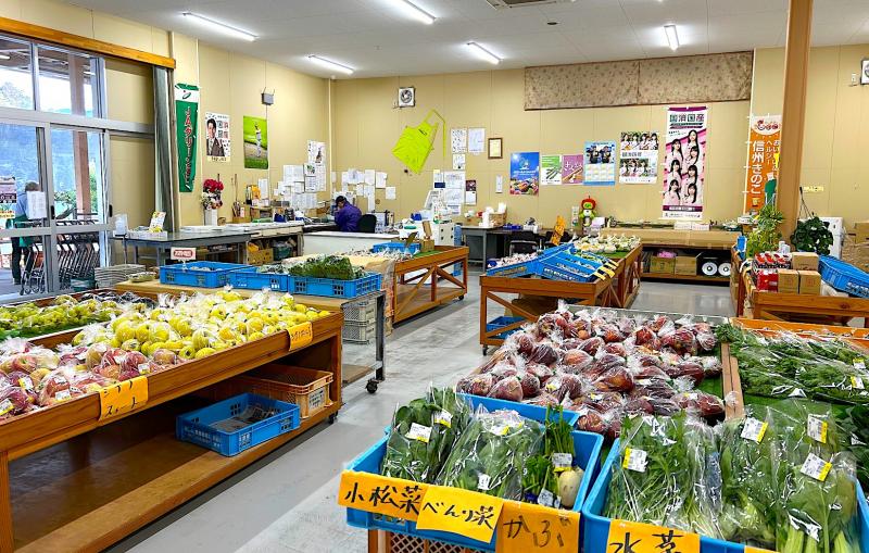 10月現在はぶどう、りんごなどの果物類が豊富で、11月は松代産の長芋など根菜類や秋冬の野菜が並ぶ