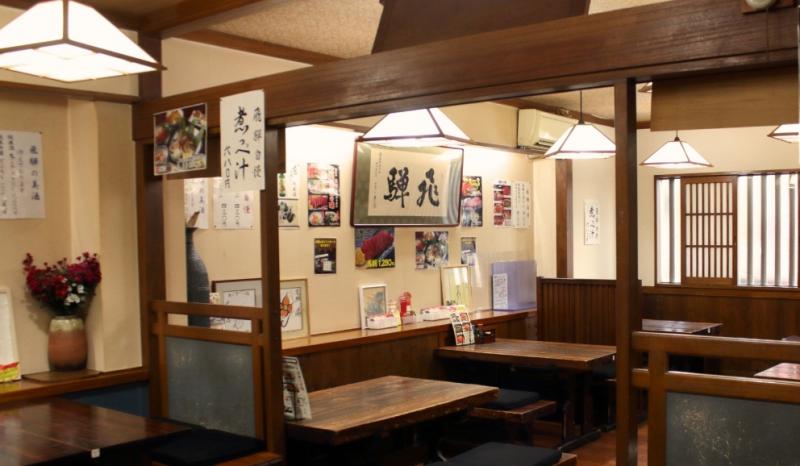 民芸調の店内。40人までの宴会など幅広く利用できる