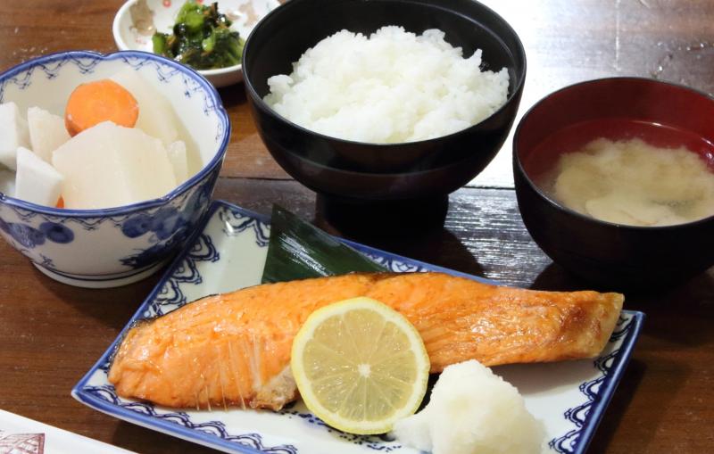 「日替り定食(980円)」写真は焼き魚定食の鮭。割り箸より大サイズで肉厚だった