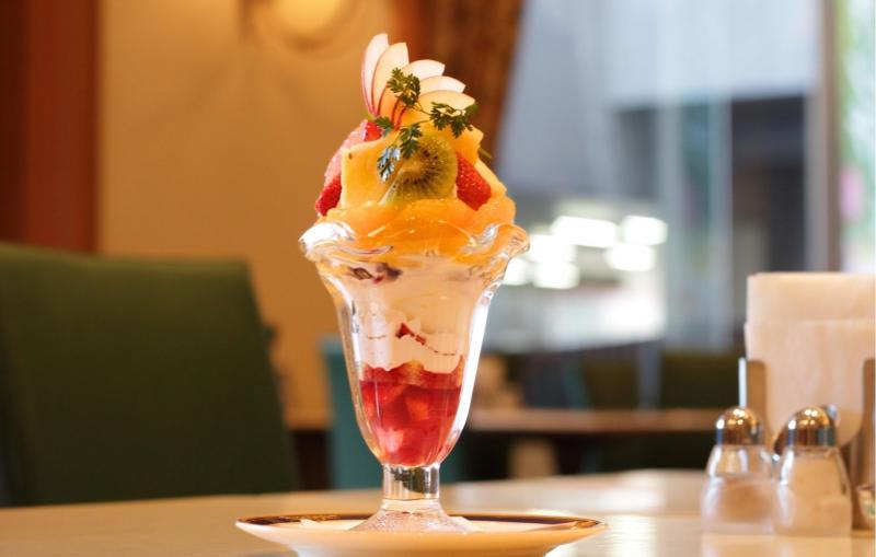 定番の「アイリスパフェ(1480円)」。フルーツは旬に応じて2~3種入れ替わる